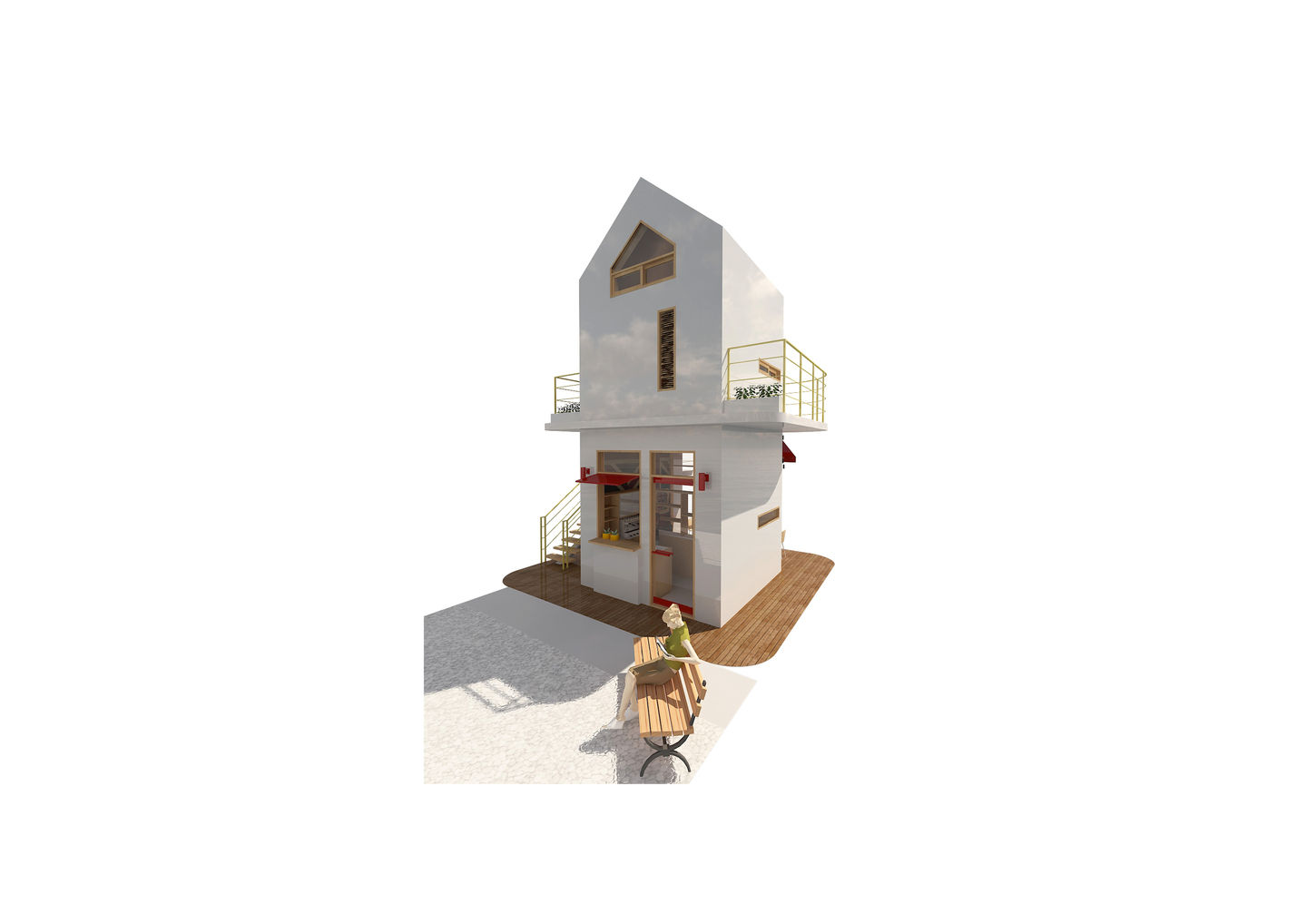 Ggac Jip(깍집)의 건축 개념은 맥락에 대한 존중과 생태적 감수성에 기반을 두고 있다. 배치는 제주 고유의 지형을 최대한 보존하며, 대지의 자연스러운 윤곽을 따라 형성되고, 섬 전통 정주 방식에서 볼 수 있는 포도덩굴형 공간 조직을 현대적으로 재해석한다. 각 주거 유닛은 다양한 높이와 각도의 파사드를 통해 주상절리의 수직적 리듬을 연상시키며, 건축과 자연의 경계를 흐릿하게 만든다. 총 3가지 타입, 14가지 형태, 4가지 규모로 구성된 유닛들은 다양한 공간 경험을 제공하는 동시에, 프라이버시와 사회적 교류의 균형을 유도한다. 이러한 군집형 구성과 공공 공간의 연계는 제주 리조트 환경에 어울리는 인간 중심의 소규모 도시성을 형성한다.
